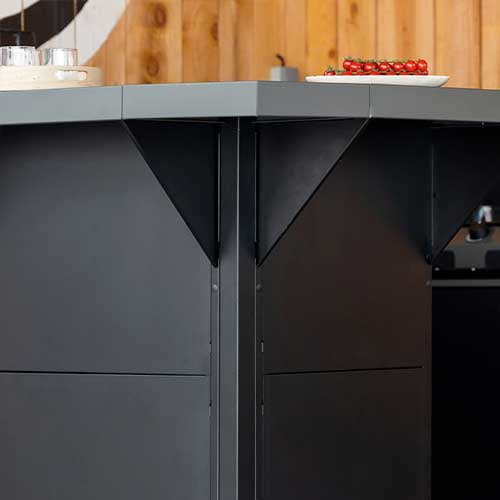 Cette cornière d'habillage d'angle noir de chez ENO permet de se fixer à votre comptoir d'angle pour une finition soignée. Compatible avec les meubles Félix et MODULO, cette cornière est en acier galvanisé thermolaqué noir. Elle convient parfaitement à votre cuisine d'intérieur ou d'extérieur, et peut s'ajouter facilement et même à postériori. Parfaite pour ajouter à votre comptoir de bar ou modules d'angle.