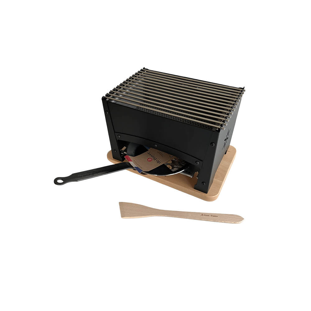 Voici un braséro qui vous permettra d'apprécier les grillades mais aussi les reblochades ! Vous pourrez faire griller vos viandes et légumes mais aussi faire fondre votre fromage (y compris le reblochon) comme une vraie raclette ! L'appareil parfait pour les gourmands ! La poêle et sa spatule sont offertes ! Il suffit d'ajouter du charbon de bois ordinaire, de l'allumer et d'attendre 10 min pour faire rougir la braise et rendre le braséro opérationnel.