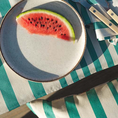 Donnez du caractère à votre table avec le jeté ADOUR de chez ARTIGA, à motifs rayés colorés. Réalisé en coton bio, il respecte la tradition basque car il est certifié Origine France et SUD Terre textile, garant de son authenticité du Sud-Ouest.