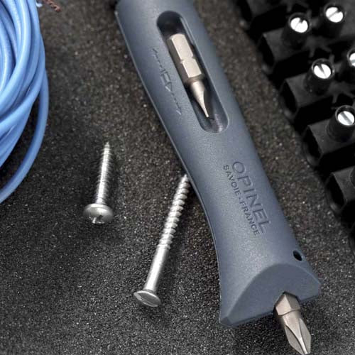 Ce couteau astucieux et performant OPINEL est un gain de temps pour les travaux électriques. Le n°9, avec sa lame robuste de 8 cm en acier inoxydable, intègre un coupe-fil (jusqu'à 5 mm de diamètre) et un dénudeur (jusqu'à 8 mm de diamètre). Son manche est équipé de deux embouts de tournevis (plat et cruciforme) qui s'attachent magnétiquement à son extrémité. Ce couteau est une très belle idée cadeau !