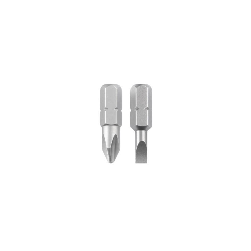 - Manche: Polyamide renforcé de fibres de verre assure une forte résistance aux chocs et à l'eau. Il inclut deux embouts de tournevis standards : un plat (pour vis de 4 mm) et un cruciforme (pour vis de 3.5 à 5 mm), avec un porte-embout magnétique à l'extrémité.