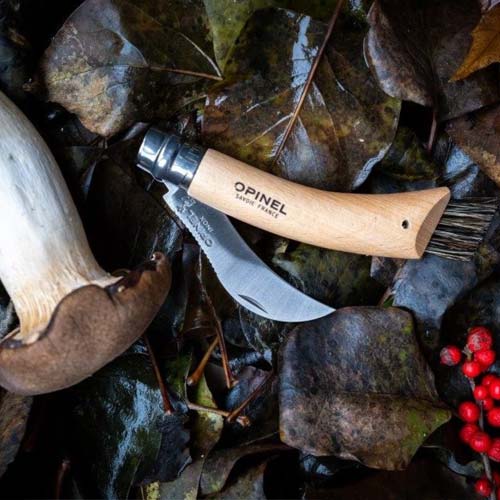 Coffret en bois contenant le couteau n°8 champignon OPINEL et son étui. Idéal pour la cueillette des champignons, ce couteau de poche dispose d'une lame courbe inox de 8 cm pour une coupe aisée et d'un dos denté pour nettoyer les champignons. La brosse en soies naturelles au bout du manche est utile pour ôter la terre et la poussière. Ce couteau est présenté dans un joli coffret en bois. Une super idée cadeau !