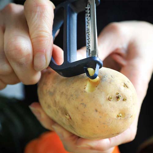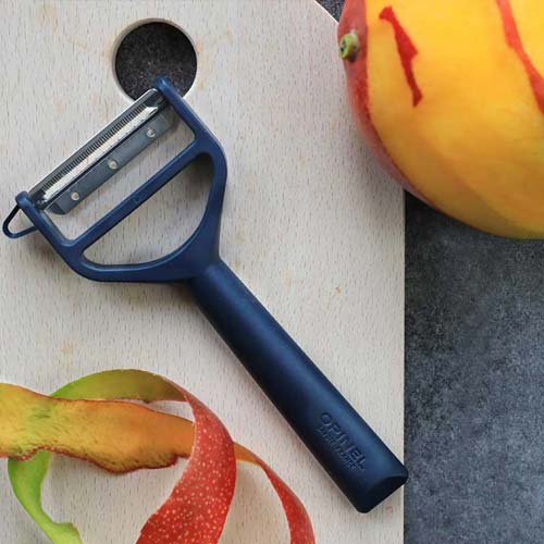 L'éplucheur T-Duo polymère Bleu OPINEL, fabriqué en France, est un ustensile de cuisine polyvalent. Il dispose d'une lame microdentée pour éplucher les légumes à peaux fines ou épaisses, d'une autre lame pour découper des juliennes, et d'un embout spécifique pour retirer les yeux des pommes de terre. Conçu pour une utilisation confortable par les droitiers et les gauchers, cet éplucheur est aussi résistant au lave-vaisselle.