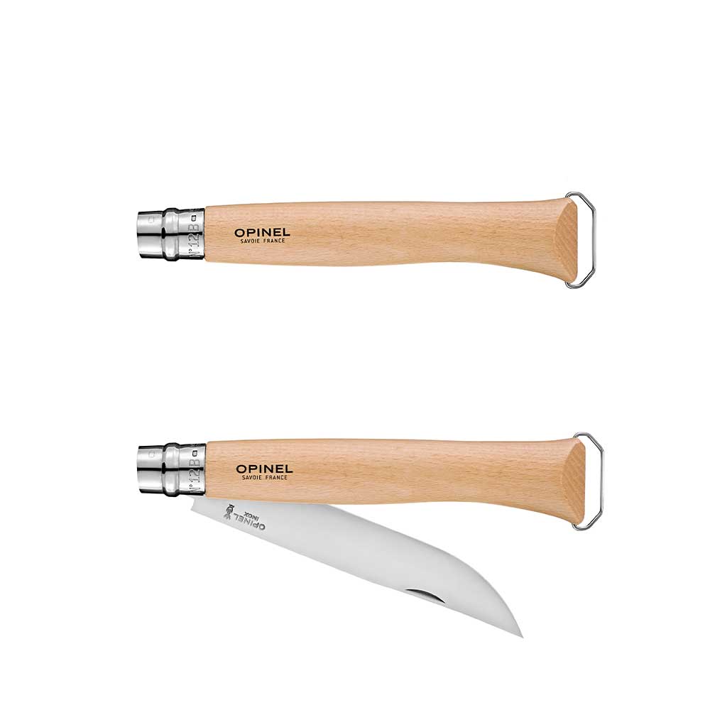 - 1 couteau fermant n°12B avec manche en bois de hêtre et lame inox 16 cm avec baque de sécurité