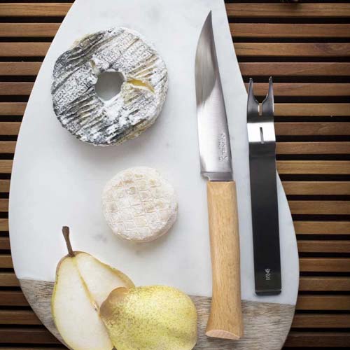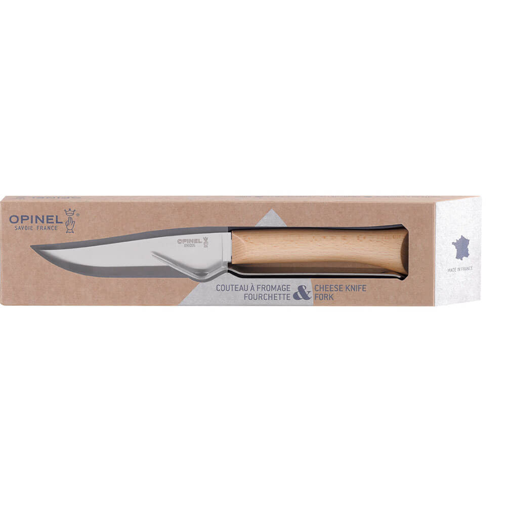 Cet ensemble comprend le couteau à fromage OPINEL, avec son manche en hêtre verni et sa lame en acier inoxydable de 12,5 cm. Il offre une coupe de haute qualité et une forte résistance à la corrosion. Il vient avec une fourchette en inox qui rend la découpe et le service plus aisés. Le couteau peut s'insérer sur la fourchette pour une présentation à la fois originale et pratique sur un plateau, une planche ou une assiette. C'est un choix de cadeau idéal pour les amateurs de fromage.