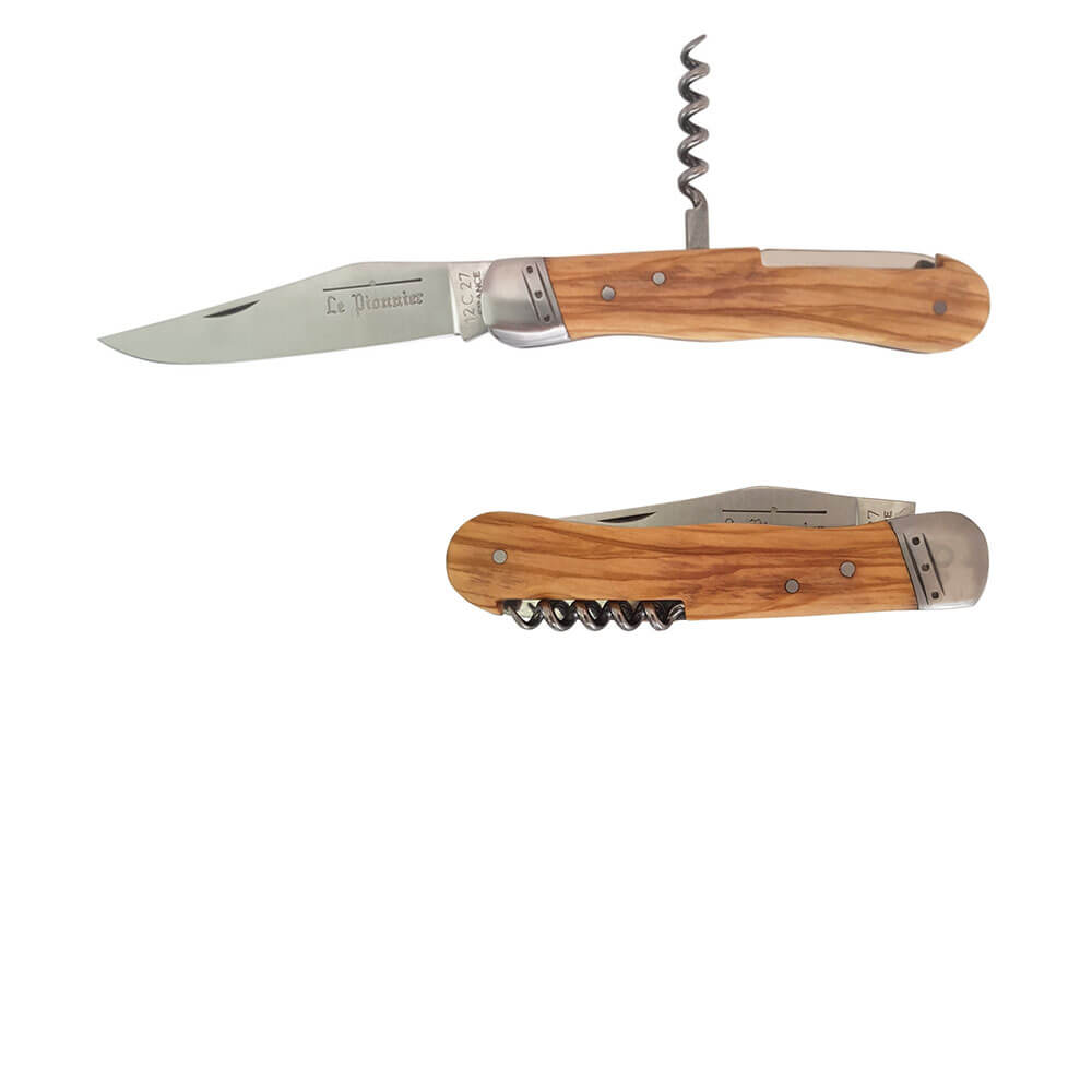 Couteau pliant Le Pionnier Bois d'Olivier avec Tire-Bouchon - DOURIS CHASTEL: