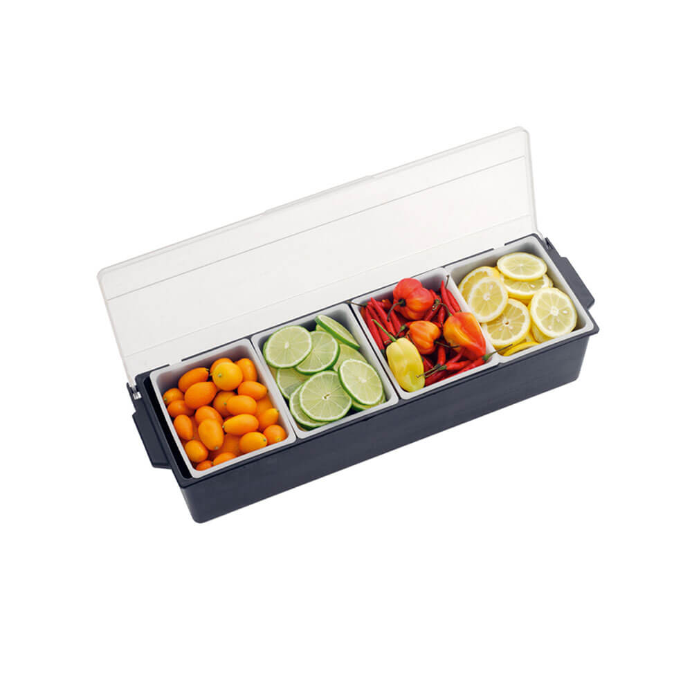 Cette boîte 4 compartiments vous permet de ranger épices et condiments pour bien préparer vos pizzas. On aime sa fermeture facile grâce à son couvercle. Idéale pour être conservée au frais entre chaque utilisation.