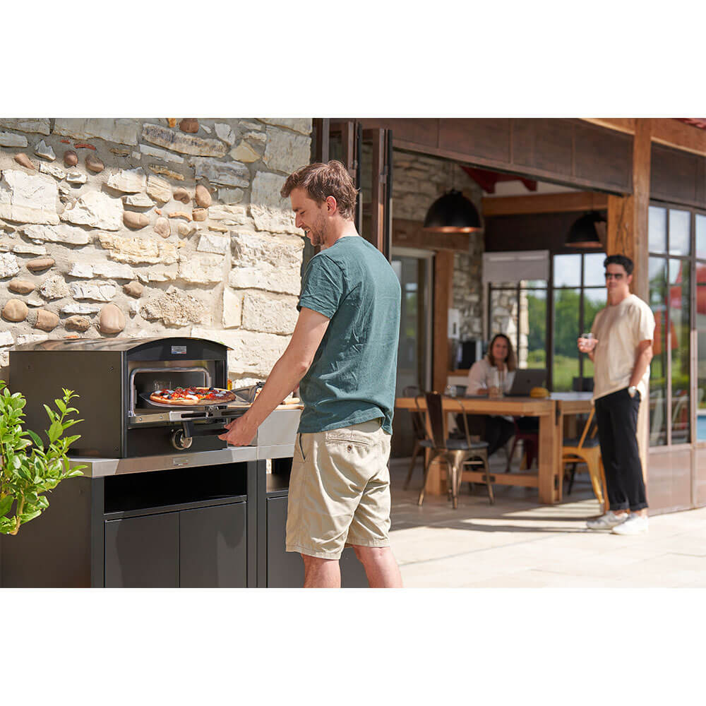 Découvrez le four à pizza Signature 350 Le Marquier ultra-performant, capable de monter rapidement jusqu'à 350°. Il dispose d'une grande surface de cuisson avec une pierre réfractaire amovible en cordiérite de 34,5 x 37,6 cm. Pratique, il a une porte vitrée et un éclairage intérieur pour surveiller la cuisson. Parfait pour pizzas, viandes, pains, gratins.