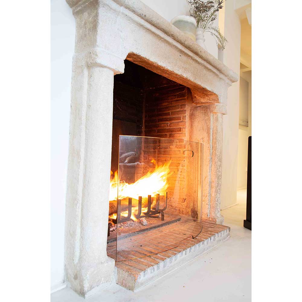 Très beau pare-feu en verre Ongui LE MARQUIER. Fabriqué en verre trempé sécurit, il est résistant aux chocs et supporte très bien la chaleur, garantissant ainsi une sécurité optimale face au feu de cheminée. On aime sa poignée très pratique pour le transporter facilement.