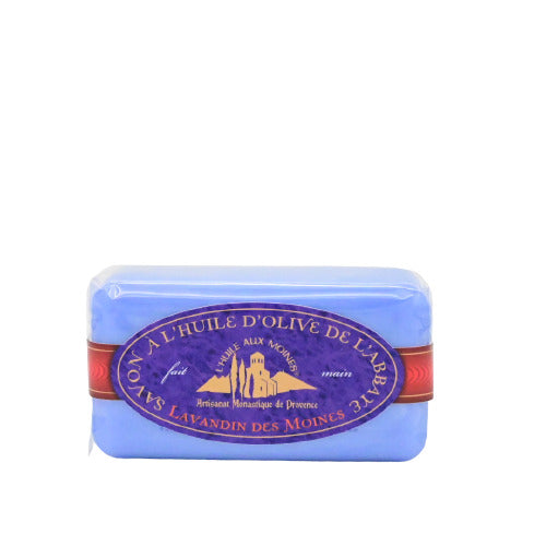 Savon solide ultra doux senteur lavande fabriqué en Provence, dans le Sud de la France à base de l'huile d'olive vierge fabriquée par les moins de l'abbaye et de la lavande cueillie à la main.