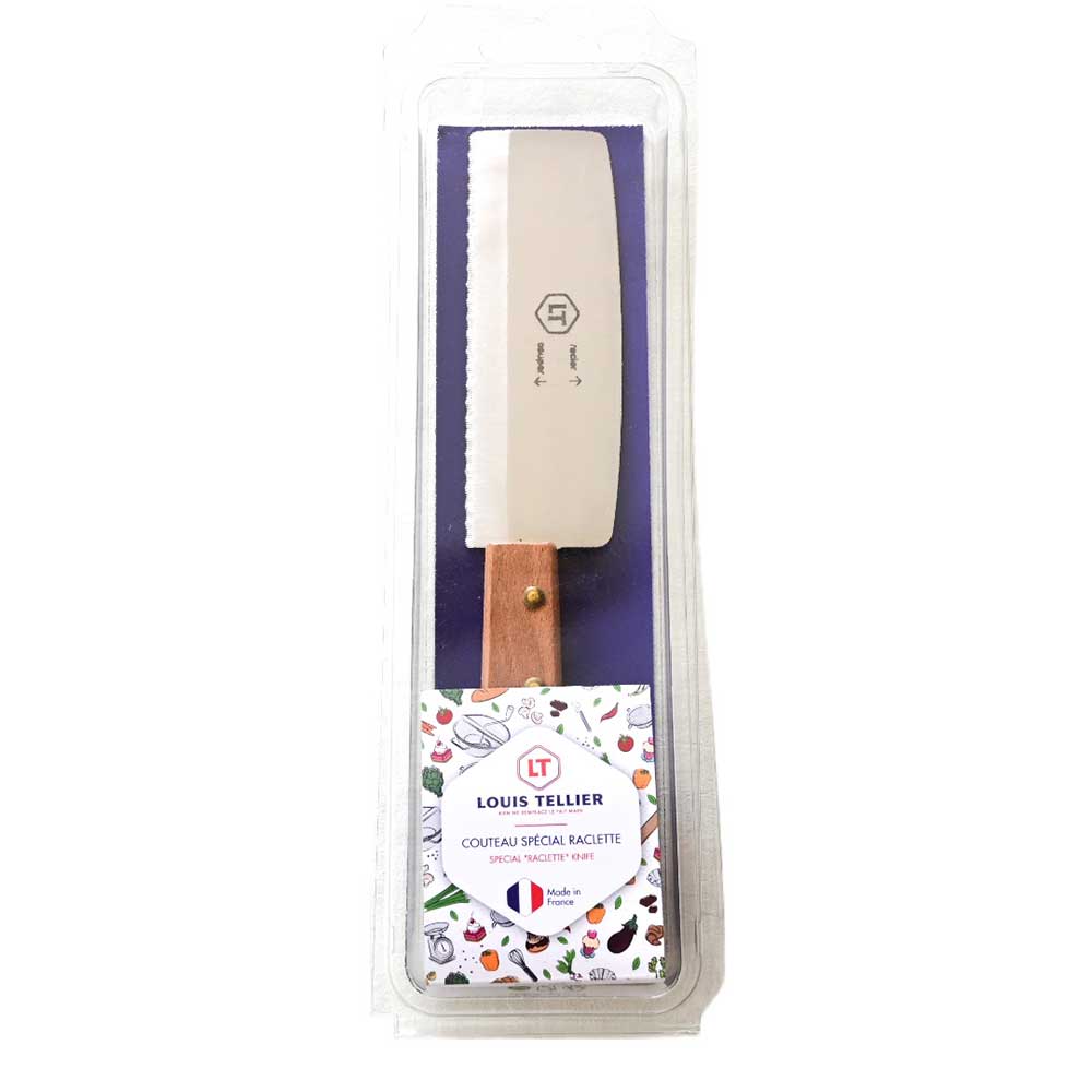 C'est le couteau spécial raclette LOUIS TELLIER pour bien faire couler le fromage dans votre assiette. Un côté lisse pour racler le fromage fondu et un côté micro-dentelé pour couper sans effort votre fromage !