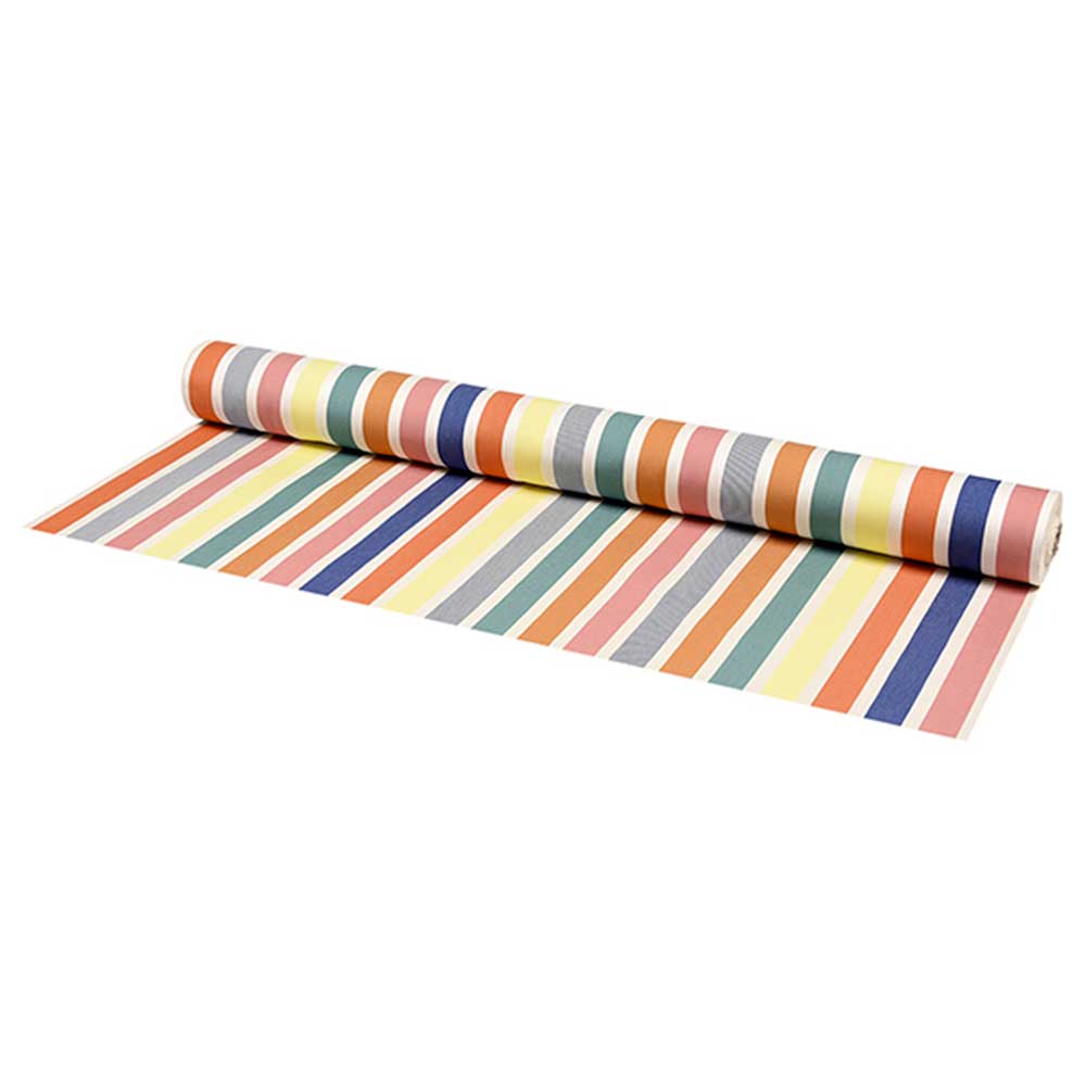 Cette magnifique toile enduite Ananas GARLIN de chez Artiga est parfaite pour toutes vos occasions de repas ! Elle apporte une ambiance joyeuse grâce à ses belles rayures colorées. Vendue au mètre, elle est confectionnée en France et d'inspiration Basque. Facile à nettoyer, un simple essuyage avec une éponge la rend à nouveau impeccable. Fabriquée sans produits chimiques nocifs, elle arbore une finition spéciale qui repousse les taches.
