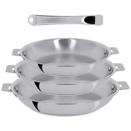 Lot de 3 Poêles inox Casteline poignée amovible OFFERTE - CRISTEL