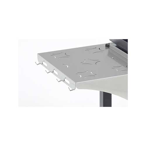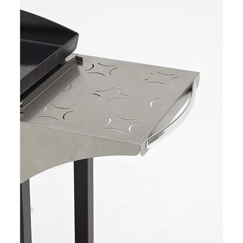 C'est le chariot ROLLER GRILL idéal pour déplacer facilement votre plancha simple 400. Pratique et fonctionnel, il possède deux tablettes latérales en inox rabattables permettant de servir de plan de travail. Une des tablettes a un espace pour accrocher vos spatules et ustensiles à proximité. La partie inférieure peut vous permettre de stocker votre bouteille à gaz, vos aliments ou vos ustensiles. Ce chariot est compatible avec toutes les planchas de chez ROLLER GRILL avec un seul espace de cuisson. On aime la poignée de cette desserte bien pratique !